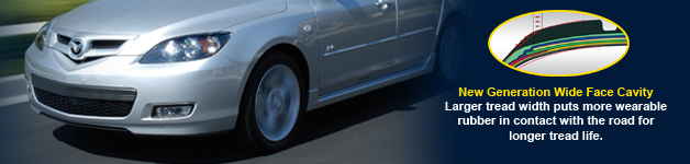 New Generation Wide Face Cavity Larger tread width puts more wearable rubber in contact with the road for longer tread life.